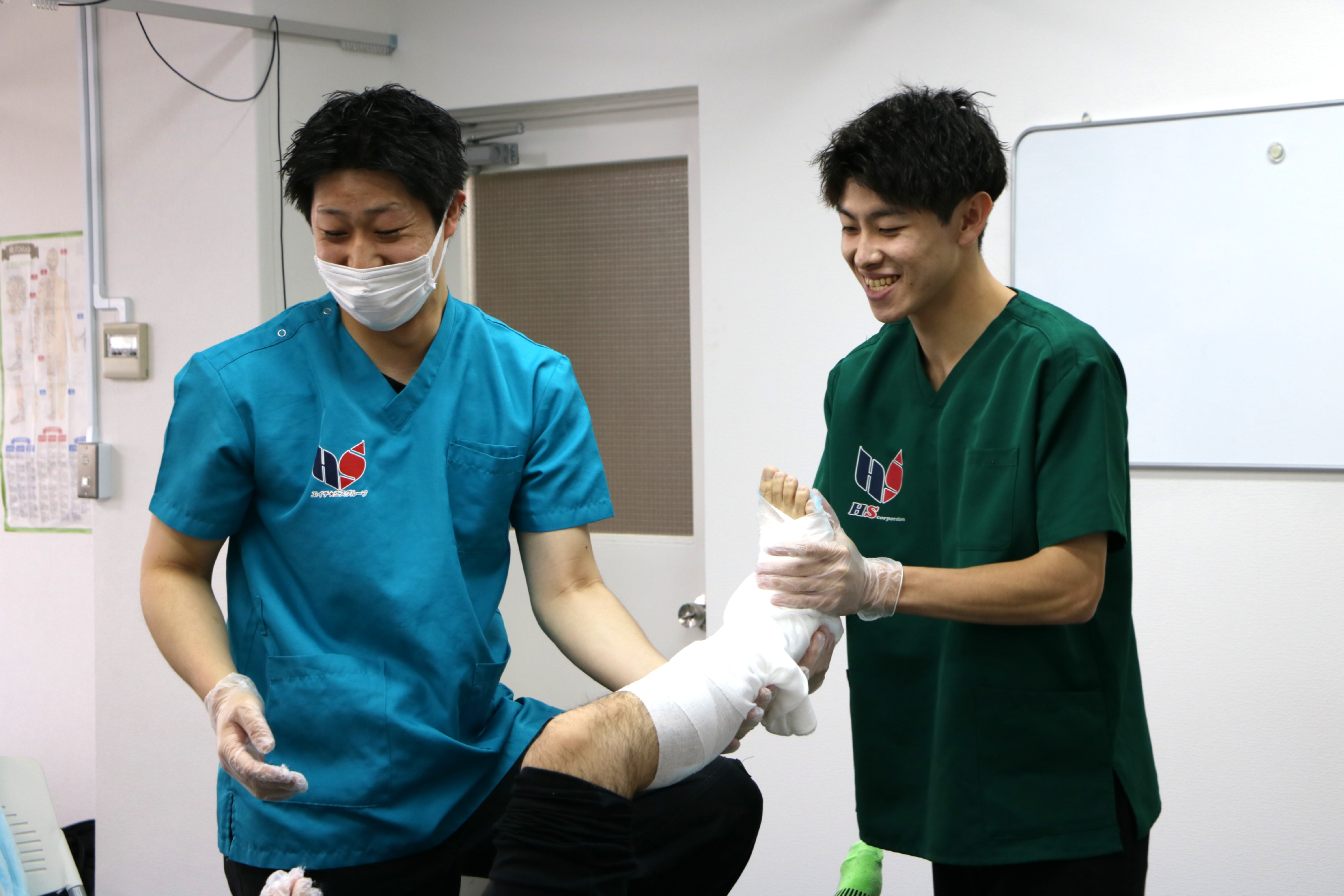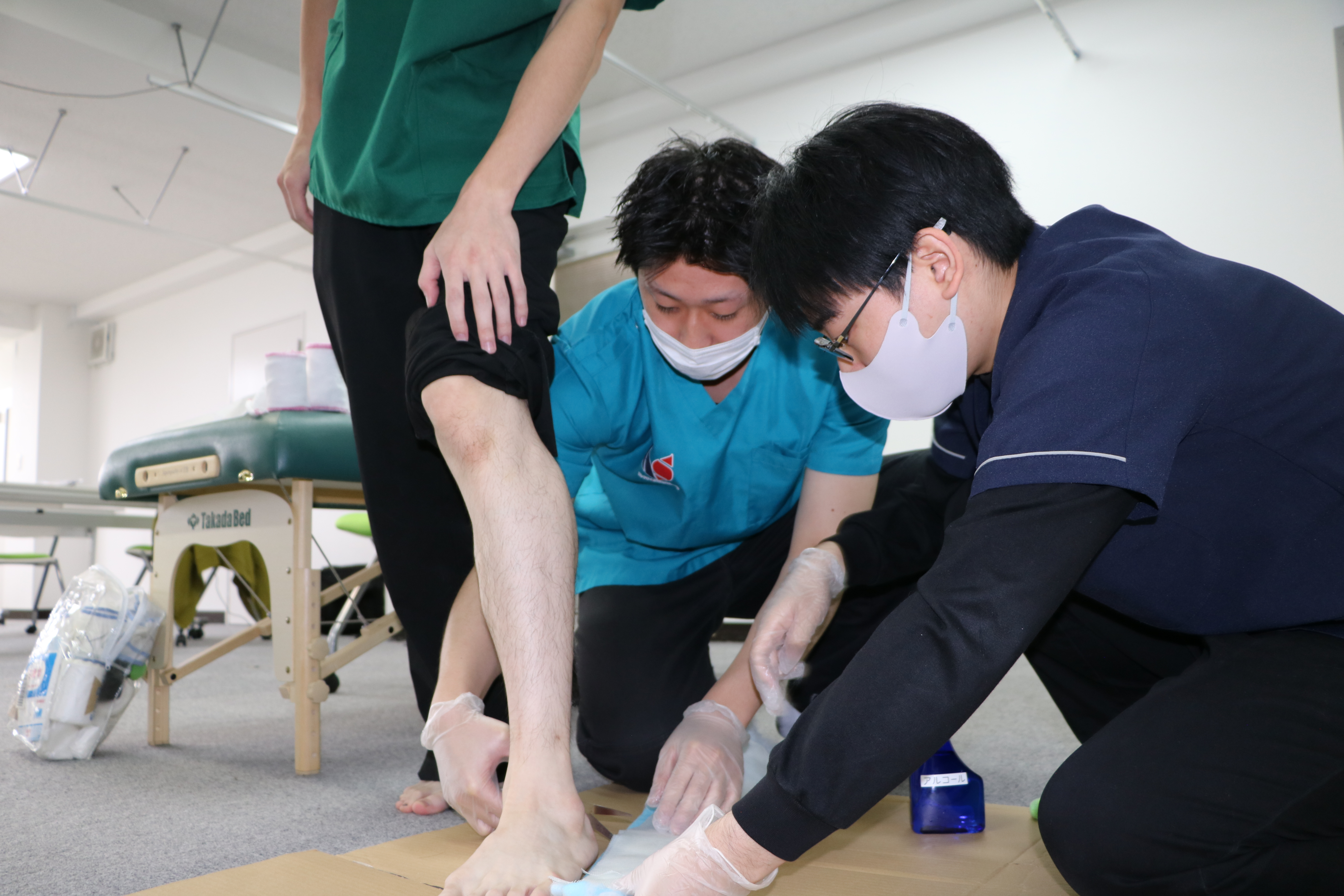 外傷が来ても焦らず対応できるように、みんな真剣に学んでいました。